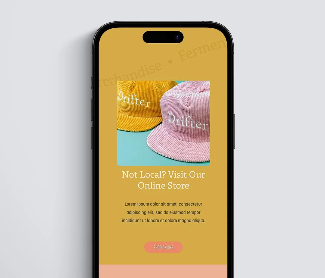 Drifter Ferments’ new branding celebrates their artisanal roots while elevating their market presence, creating a unified story that engages customers and strengthens their connection to the brand. This project showcases my ability to craft cohesive brand identities that shine across digital and physical spaces, bringing brands to life in a way that resonates with their audiences.