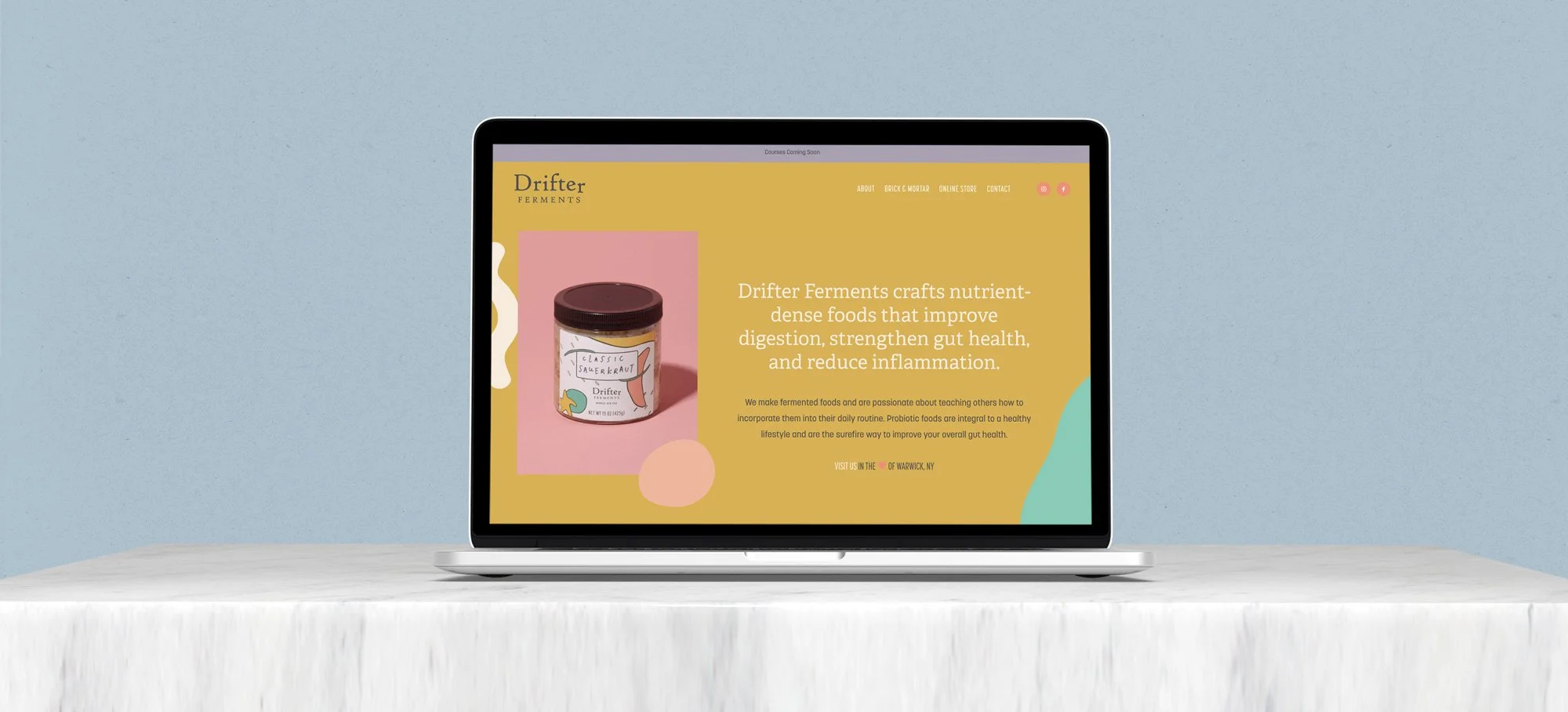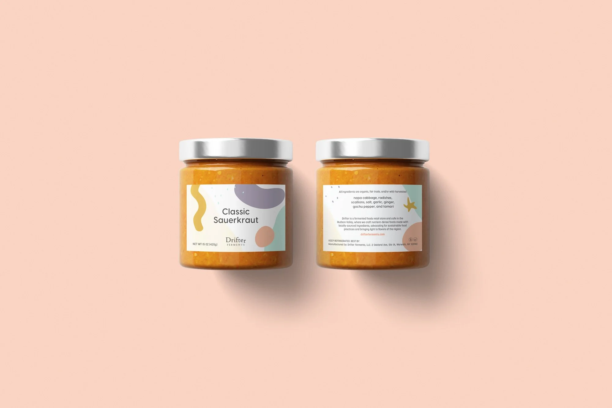 Drifter Ferments, based in Warwick, New York, specializes in creating vibrant, artisanal fermented products that capture the essence of creativity and bold flavors. I partnered with Drifter Ferments to bring their brand to life across multiple platforms, starting with a comprehensive website redesign and vibrant branding refresh. From there, we extended their dynamic visuals to product packaging and merchandise, ensuring a cohesive and engaging brand experience from digital presence to physical products.
