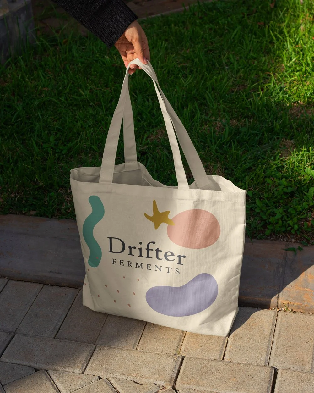 As we transitioned to physical applications, we focused on creating product packaging that stood out on shelves and resonated with Drifter Ferments' audience. Each label design highlights the unique personality of their products, blending fun illustrations with clear, appealing typography. Merchandise, including totes and other branded items, was designed to complement the packaging and website, offering customers a tangible extension of the brand experience.