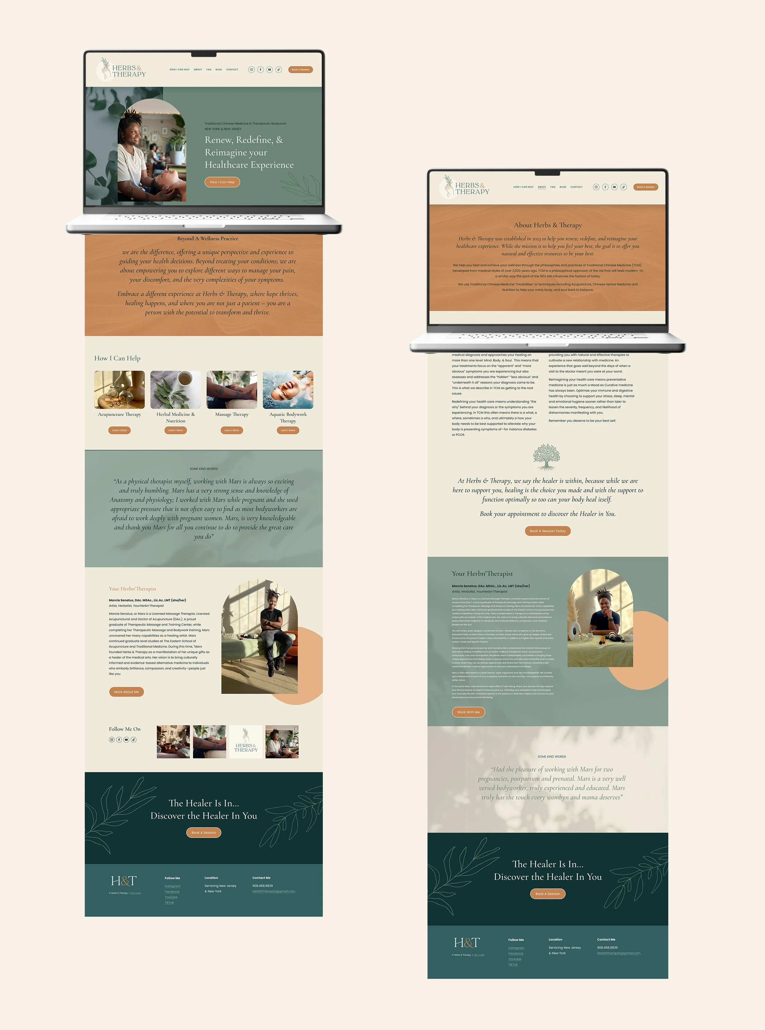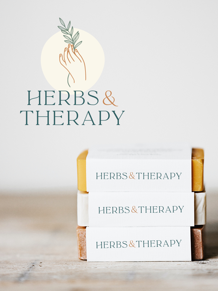 The brand identity for Herbs & Therapy was designed to evoke a sense of calm, holistic healing, and nurturing care—essential qualities for a wellness practice that prioritizes a tailored, personal approach to each client. The logo, a hand gently holding an herb, perfectly encapsulates this ethos, blending symbols of massage and traditional Chinese medicine. The hand-drawn feel of the logo further emphasizes Mars' hands-on approach to therapy, underscoring the custom nature of each treatment she offers.