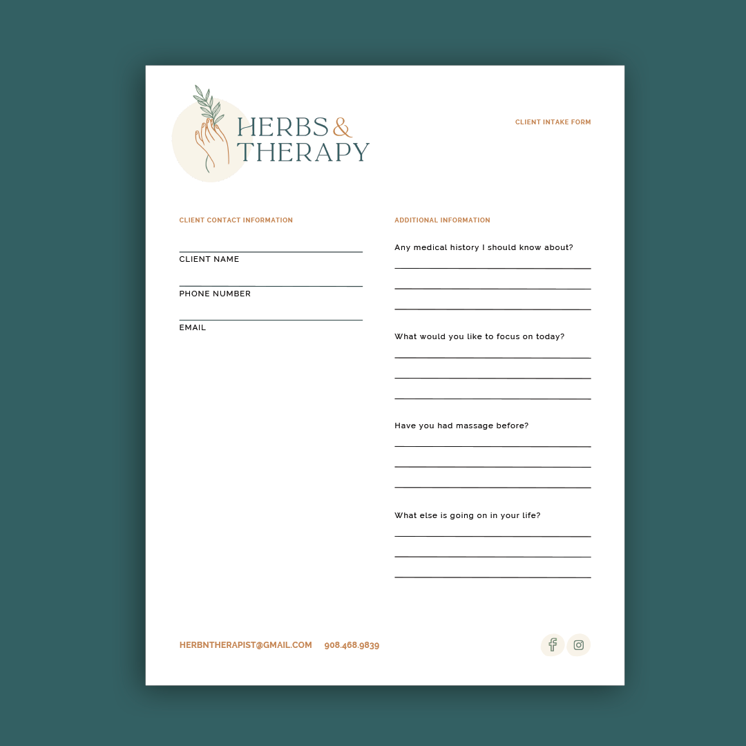 In addition to the logo and website, we created a simple but essential letterhead template for client questionnaires. This piece helps to maintain a consistent, professional look when communicating with clients prior to sessions, further reinforcing the brand’s dedication to organization and personalized care.
